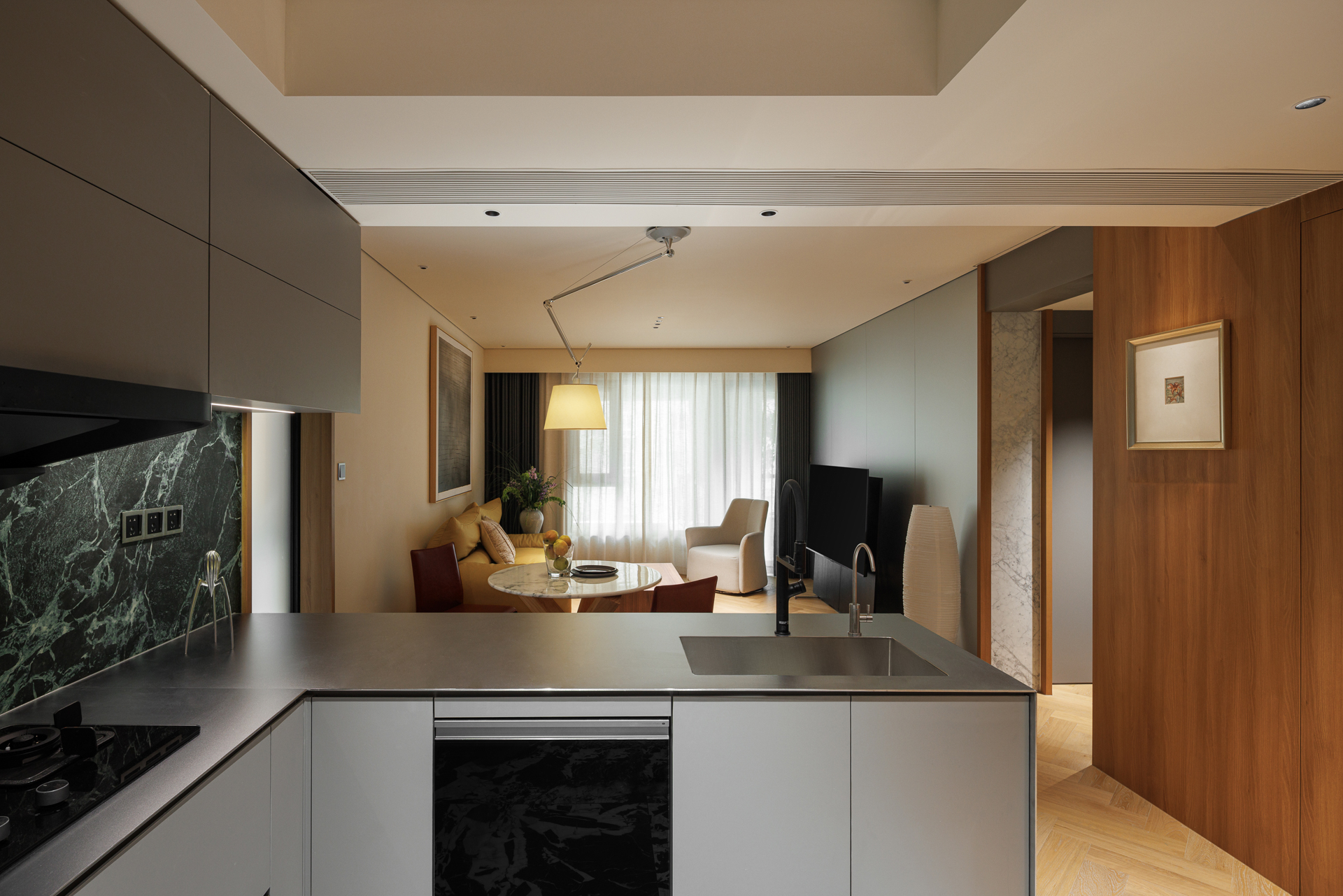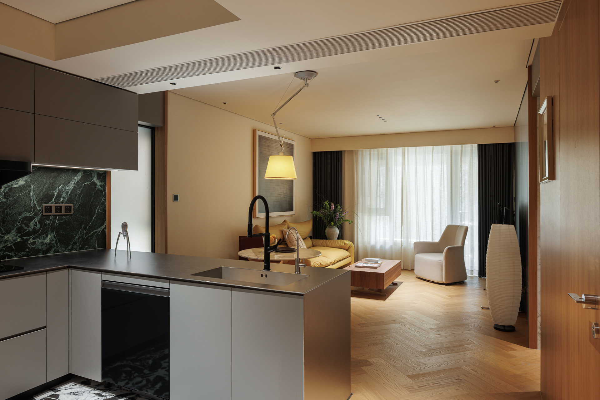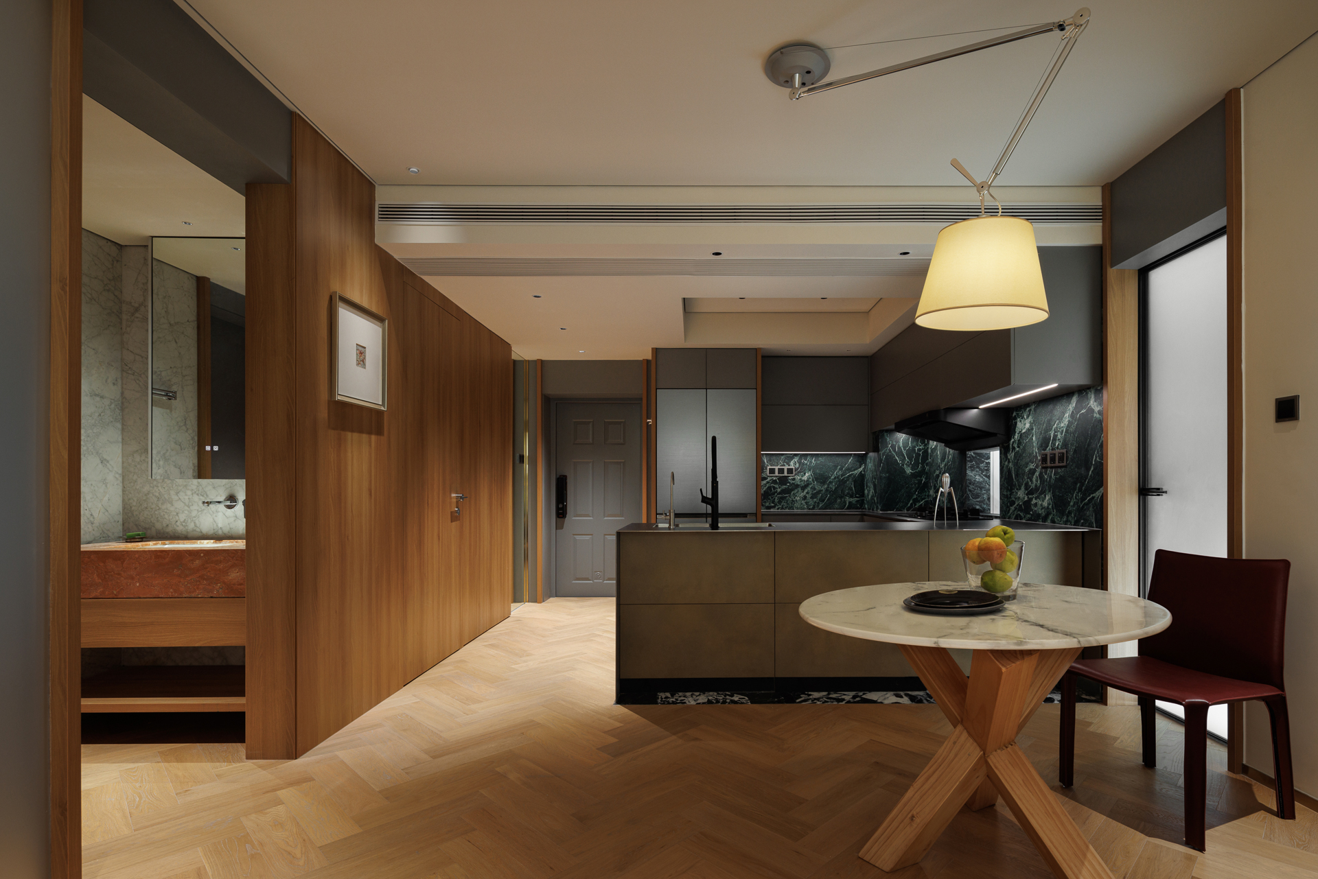 “父母其实并不需要太大的空间,这样只会增加孤独的感觉,因此将家的面积尽量做到功能和形式的统一,组合成一个灵活多用的整体。